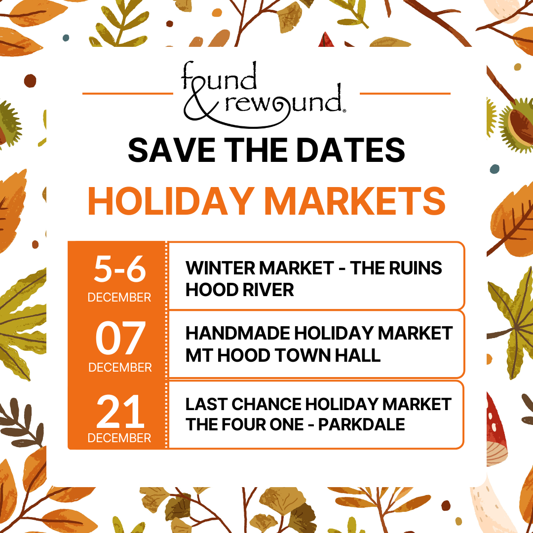 It's holiday market season and I would love to see you and yours out there this winter. Save these dates for great events to shop local, support small businesses, and get one of a kind gifts for those you love!