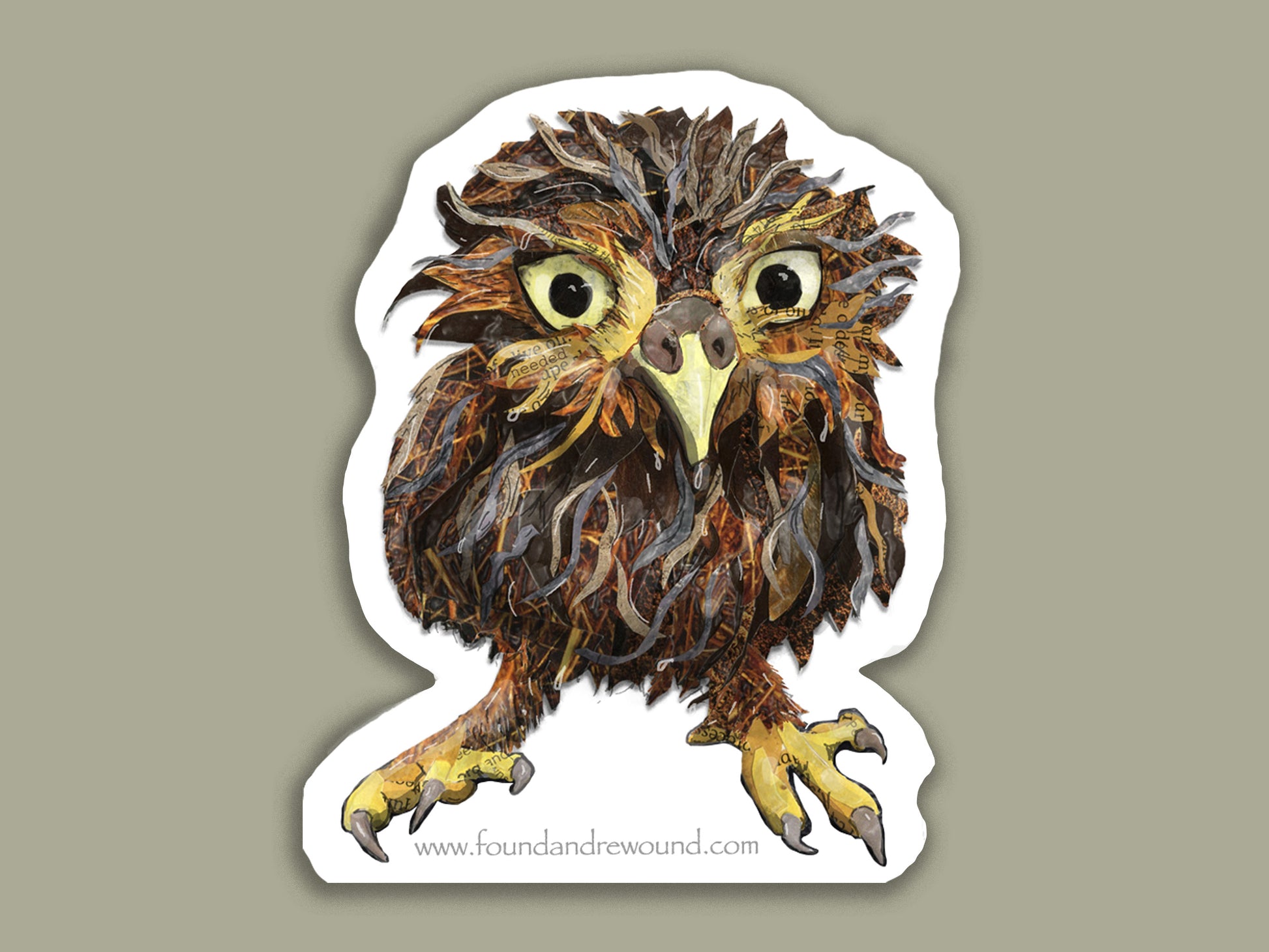 This sticker is a reproduction made of my original mixed media collage of a soggy owl. Thick, durable vinyl protects your sticker from scratches, water & sunlight. Use this sticker anywhere you want to show off your personal style - waterbottles, ipad, laptop, book covers, notebooks - you name it!